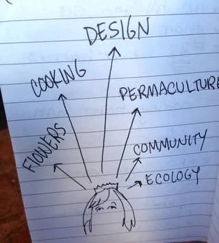A drawing from many years ago about all of my passions. The next step was how to combine them